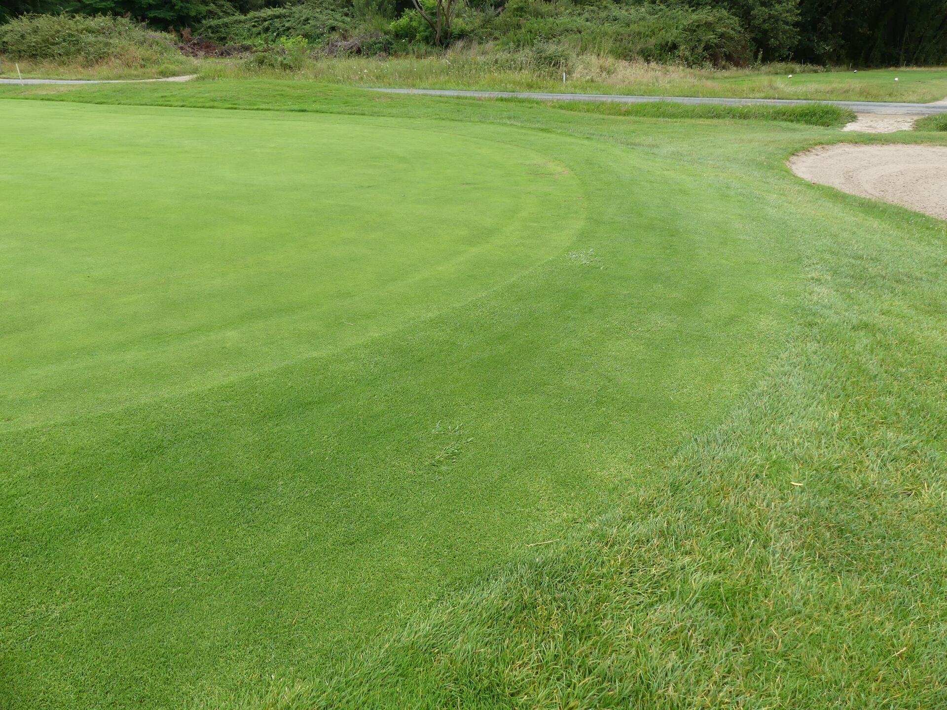 L’absence d’arrosage sur les fairways couplé à la nature du sol permettent également à certaines espèces indésirables de s’installer sur le golf. C’est notamment le cas du paspalum dilatatum, véritable fléau à Cameyrac. Il se répand comme une tache d’huile et il est presque impossible de l’éradiquer sans utiliser de glyphosate. « Ici le problème, c’est qu’on n’a pas d’arrosage sur les fairways, les graminées meurent rapidement et laissent le champ libre à cette espèce invasive qui pousse vite et passe mal dans les cylindres des tondeuses. Sans compter que la tonte disperse les graines. Pour l’éradiquer, il faudrait passer du glyphosate, retourner la terre et ensuite resemer », explique le greenkeeper.