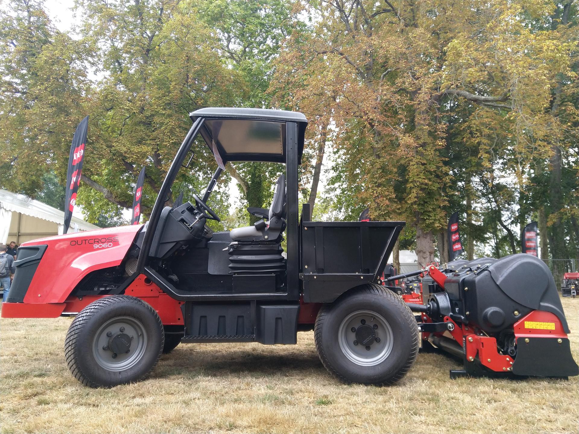 Toro a présenté un véhicule inédit sur le marché français, le Outcross 9060, un tracteur porte-outils bi-place, qui intéressera les intendants de terrains de sport, pour les opérations d'aération, de sablage, de regarnissage, ou encore de déblayage, de chargement...