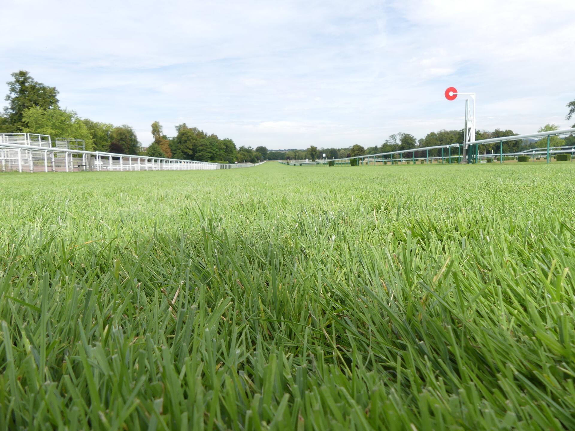 Deux fois par saison, vers fin juillet début aout, l’hippodrome de Compiègne accueille des courses de trot sur gazon. Et là encore, l’entretien doit être adapté. La tonte est abaissée à 11 cm et le gazon ne doit pas être arrosé pendant les 4 jours précédents la course afin que le sol soit suffisamment dur. Dans une période qui est déjà compliqué pour le couvert végétal, le gazon subit à la fois un stress hydrique et est aussi abimé par le passage des roues des sulkys sur un sol plus sec qu’à l’accoutumée. « Ces courses arrivent un peu au pire moment. Normalement, c’est une période où il faut préserver le gazon », constate le régisseur. Pour renforcer le gazon avant ces courses, il a fait le choix d’appliquer un engrais d’hiver en amont.