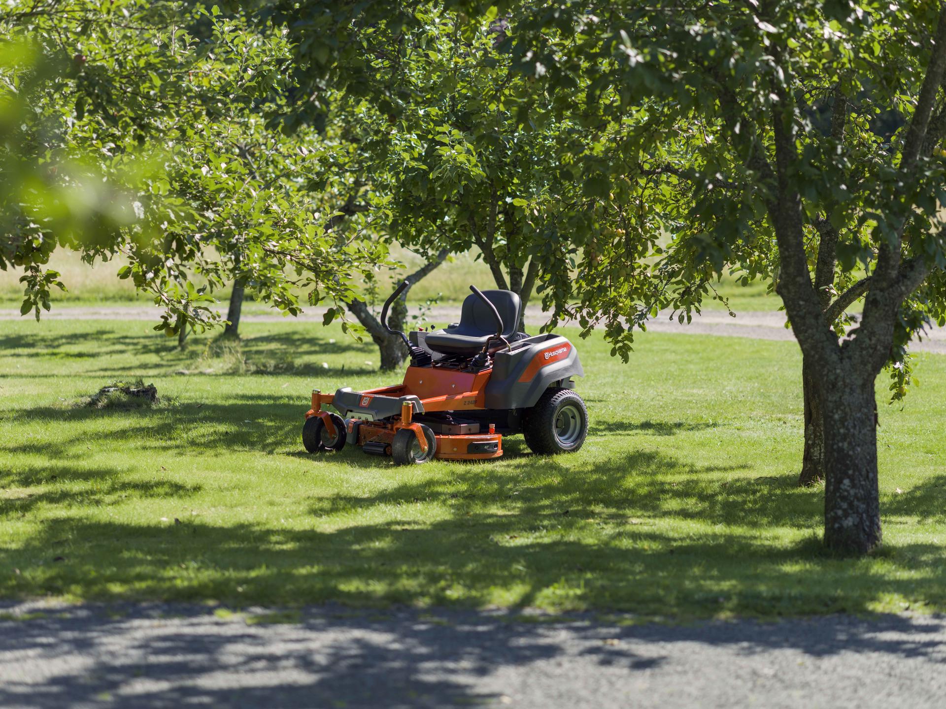 Robuste, la tondeuse Z242F autoportée et à rayon de braquage zéro est dotée d’un puissant moteur bicylindre (Briggs & Stratton, 734 cm3), ainsi que d’un carter en acier de 107 cm pour une coupe de précisions sur les terrains imparfaits et les surfaces difficiles d’accès. Six hauteurs de coupe peuvent être réglées sur une fourchette comprise entre 38 et 101 cm. Pour garantir une utilisation en toute simplicité, le panneau de réglage de la hauteur de coupe est positionné sur l'aile gauche : une simple pression sur un bouton permet d'embrayer les lames et le frein de parking est automatique quand les leviers sont écartés. Côté confort, les amortisseurs en caoutchouc rendent la conduite plus douce, et le panneau de contrôle ergonomique met toutes les commandes à portée de main.